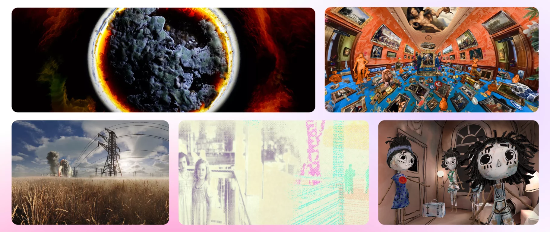 Chamboulant les codes et mêlant les genres, ce parcours vous entraînera dans un voyage immersif aux confins de la VR. Entre satires pop, questionnements philosophiques, récits familiaux et critiques post-coloniales ou écologiques, ces cinq œuvres allient habilement réflexions sociétales et explorations artistiques pour vous en mettre plein la vue !