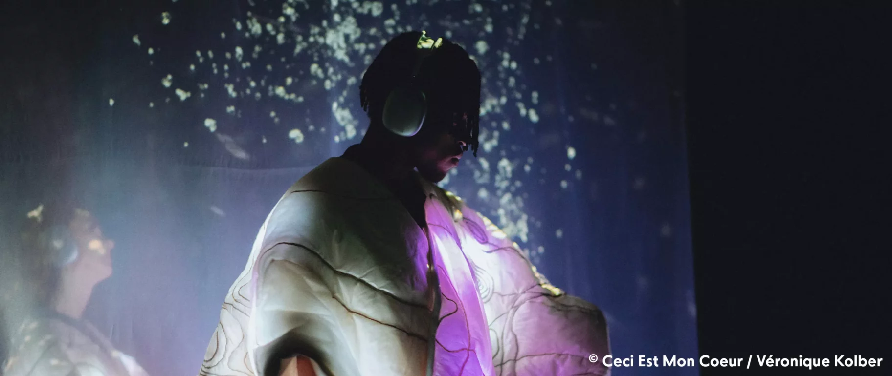 En étendant le récit à plusieurs dimensions (vidéo projection, costume connecté, son au casque), cette expérience proche du cinéma permet de partager les témoignages et émotions de ses deux créateurs.